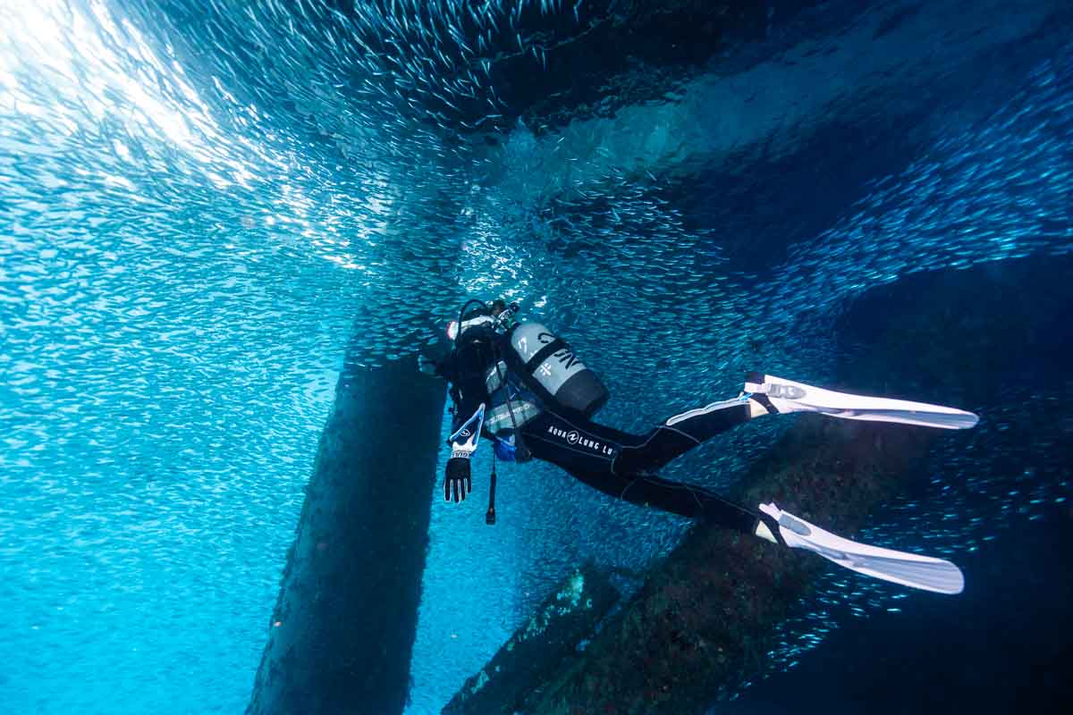 秋は観光客が減りゆったり潜れる日が増え、冬は透明度と独特の海中景観が魅力になることがあります。